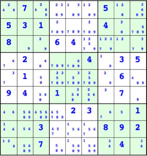 目次へ これまでに作った関数のまとめ plotGame[ini_] (1)で説明 plotMapGrid[ini_, mapini_] (2)で説明 makeMap[ini_] (3)で説明 前回で作った関数makeMapを使って 候補のリストmapini を作る。これを表示したものが次である。 mapini=makeMap[ini]; Show[R…