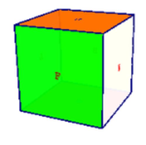 面に Texture で文字を書く。 vtc = {{0, 0}, {1, 0}, {1, 1}, {0, 1}};(*VertexTextureCoordinates*); (* front *) front = {{0, 0, 0}, {1, 0, 0}, {1, 0, 1}, {0, 0, 1}}; ffc = # + {0, 0, 0} & /@ front; fF = {Texture[ Graphics[{Red, Text[Style["F"…