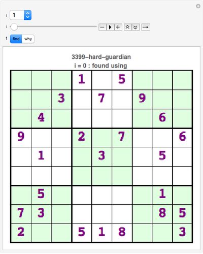 目次へ Sudoku 3405 hard, the guardian, Sat 9 Apr 2016 を Mathematica で解いた。 Sudoku 3405 hard Step by step の解答 このパズルは Naked Singles(裸のシングル) 、Hidden Singles(隠れたシングル) の他に Naked Pairs, Hidden Pairs と Pointing Pai…