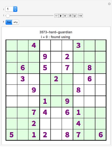 目次へ Sudoku 3573 hard, the guardian, Sat 22 Oct 2016 を Mathematica で解いた。 SUDOKUWiKI.ORG を参考にした。解き方の定石が書いてあります。 The Logic of Sudoku Sudoku 3573 hard Step by step の解答 このパズルは NakedSingle (裸のシングル)、…