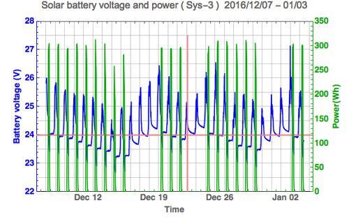 目次へ 期間 2017/02/03-03/03 のバッテリー電圧のモニター | 3時間出力 2月3日から 5日: 夕方5時から9時まで4時間の放電。 2月6日から23日:夕方5時から10時まで5時間の放電。 2月24日から3月3日:夕方5時から9時まで4時間の放電、 まとめ バッテリーに十分に…
