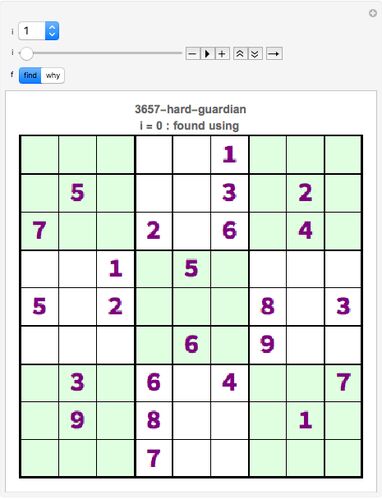 目次へ Sudoku 3789 hard, the guardian, Sat 1 Jul, 2017 を Mathematica で解いた。 SUDOKUWiKI.ORG を参考にした。解き方の定石が書いてあります。 The Logic of Sudoku Sudoku 3689 hard 候補図 Step by step の解答 このパズルは NakedSingle (裸のシン…